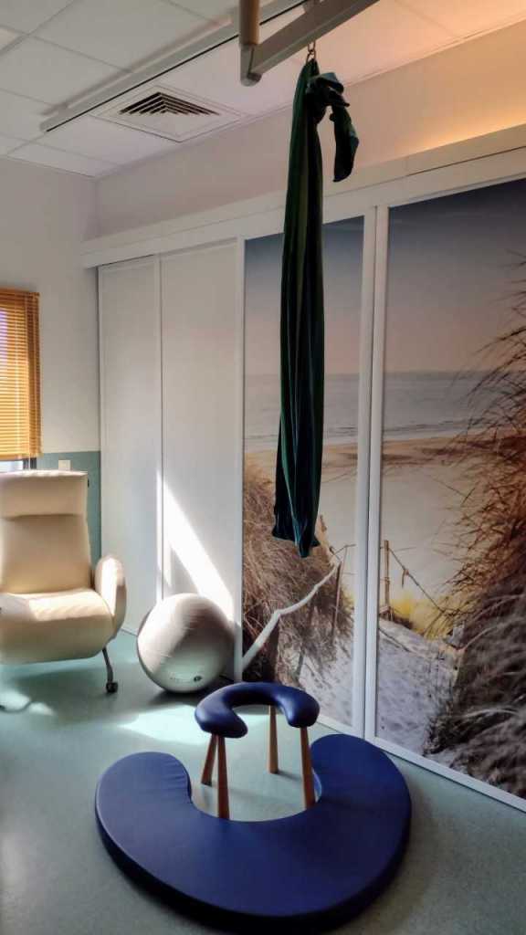 Cet espace, cofinancé par la région Bretagne, les fonds européens et le centre hospitalier de Ploërmel, est dédié aux futurs parents désireux de vivre leur accouchement au plus près du respect de la physiologie.